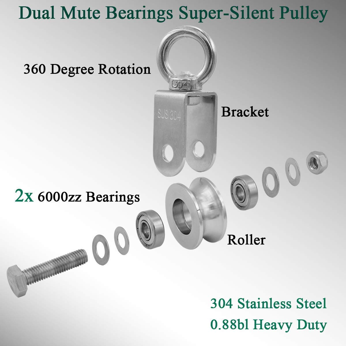 Penkwiio Pulley Wheel Stainless Steel Duplex Bearing Super-Silent Detachable 360 Degree Rotation Heavy Duty Traction Wheel Pulley System Gym Loading 500KG