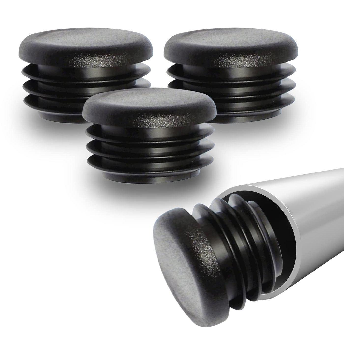 Prescott Plastics 1" Inch (25.4 mm) Round Plastic Hole Plugs, Inserts, Black End Caps for Metal Tubing, Hardware Plug, Fences, Glide Protection from Chair Legs and Furniture - Pack of 4 1" 4 Pack