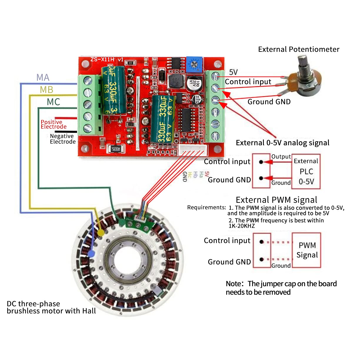 - Three phase DC brushless with Hall motor controller, need motor with Hall to work properly. Brushless motor driver board, high power PLC. This driver is only for DC brushless with Hall motor with electric angle 120 degrees.