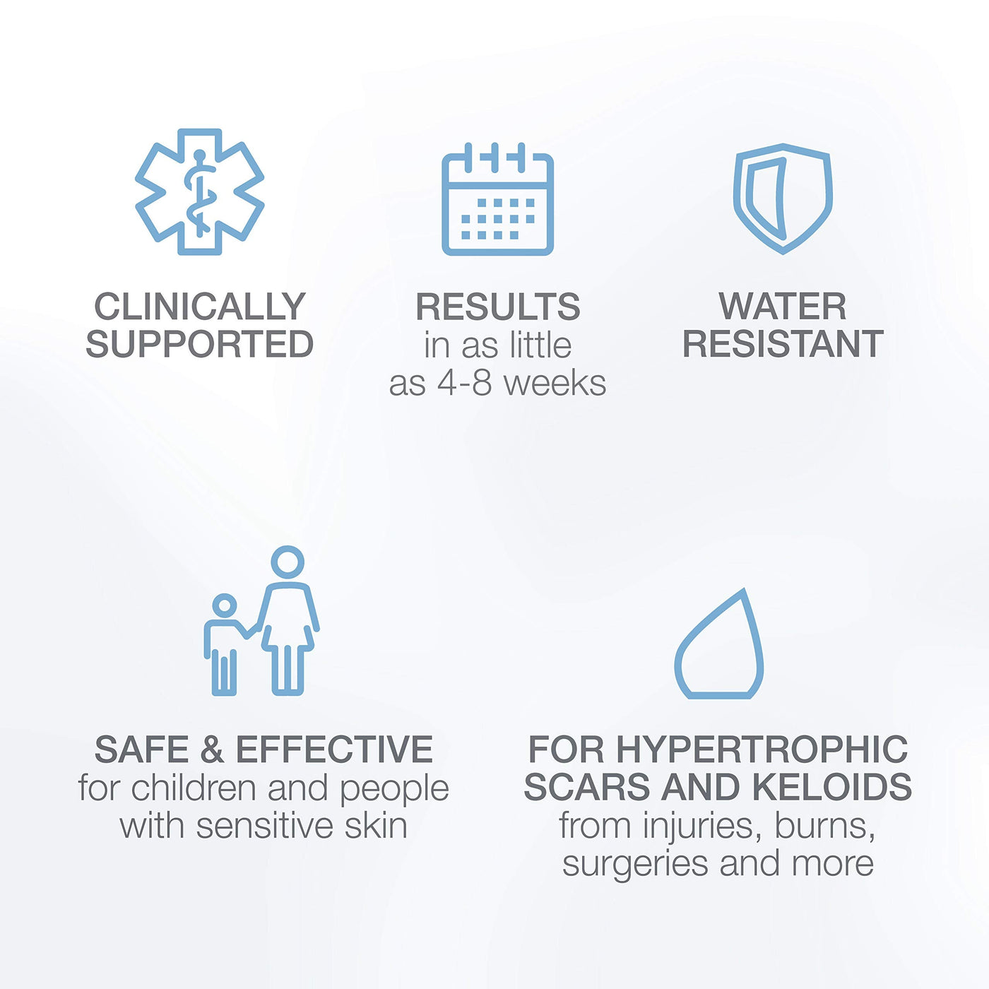 • SILICONE GEL SCAR TREATMENT: No need for surgical scar removal procedures; silicone is the most recommended scar reduction treatment ingredient by dermatologists and plastic surgeons*. *Of U.S. physicians surveyed by an independent market research firm