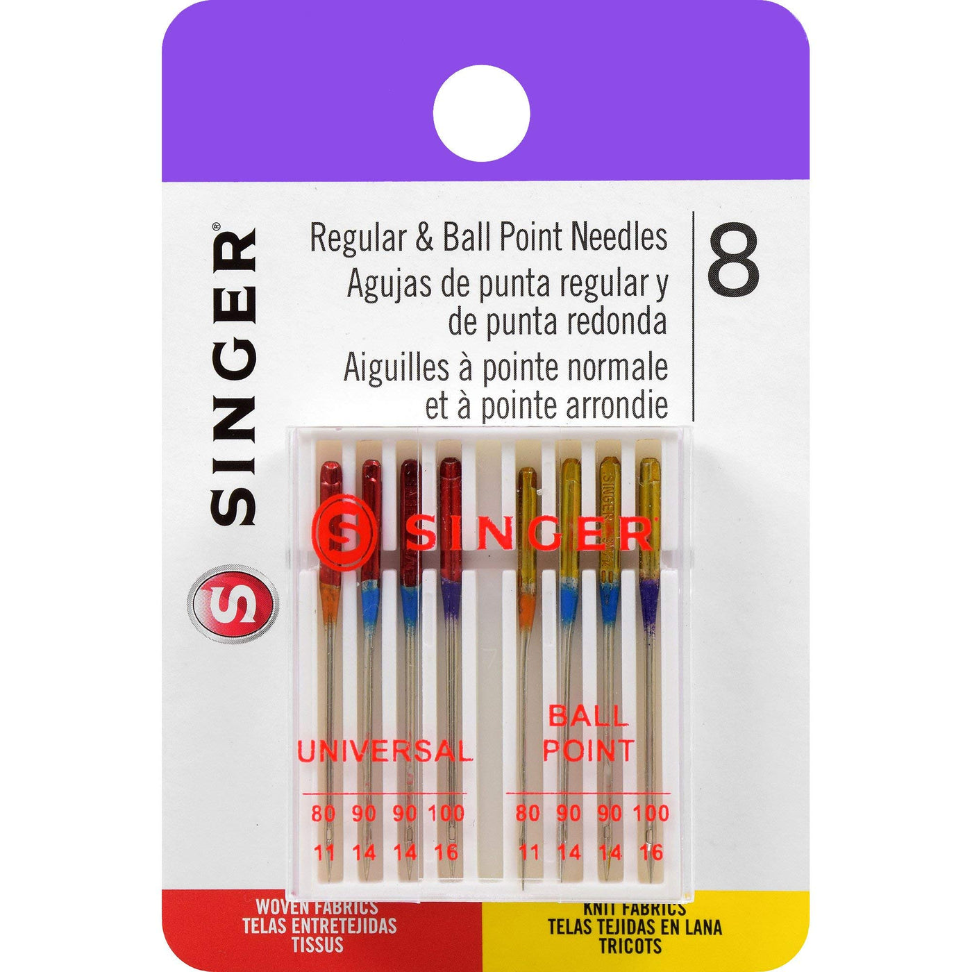 SINGER 04800 Universal Regular Point and Ball Point Sewing Machine Needle, Assorted Sizes, 8-Count
