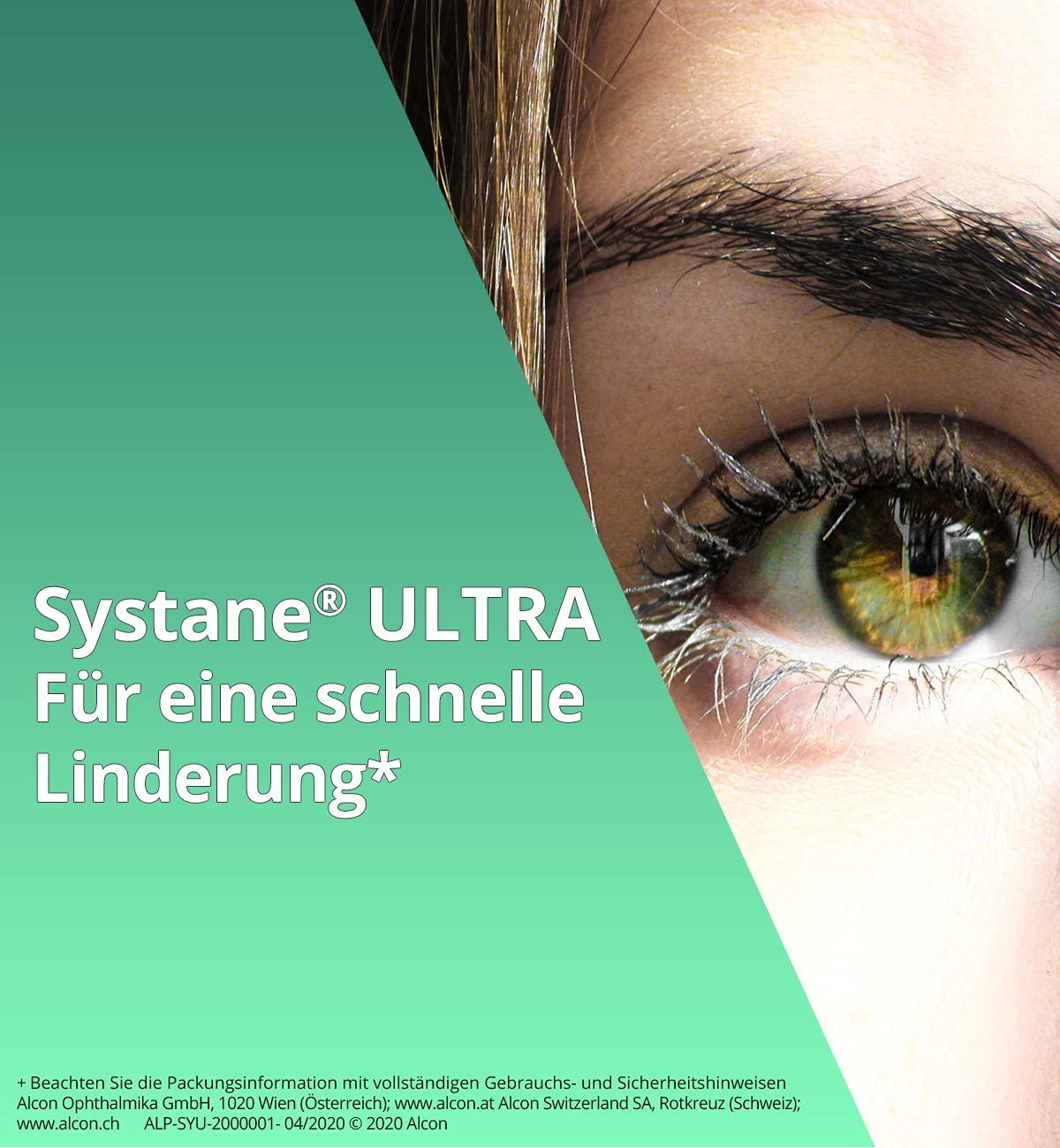 Product description 1 ml solution contains 4 mg polyethylene glycol 400, 3 mg propylene glycol, 1.9 mg HP-Guar, sorbitol, 0.01 mg Polyquad as a preservative. Systane Ultra wetting drops - for dry eyes: Thanks to a unique formulation, Systane Ultra wetting drops for the eyes offer maximum comfort and a long-lasting effect to relieve the typical symptoms of dry and irritated eyes. Systane Ultra wetting drops are easy to instill and spread evenly over the entire surface of the eye with the first blink of an eye without impairing vision. What's special: Due to the special composition, Systane Ultra wetting drops change their consistency upon first contact with the tear fluid. This causes the active ingredients to combine to form a viscoelastic gel that compensates for the damaged tear film. This protective film ensures a gentle feeling and intensive moistening of the surface of the eye and thus optimally supports the regeneration of the corneal cells. Thanks to its unique active principle, Systane Ultra is the drug of choice for all patients with dry eyes. Contact lens wearers also benefit from the regenerating effect of Systane Ultra. It is recommended to use them before and after wearing contact lenses. Systane Ultra can be stored in the multi-dose bottle for 1/2 year after opening. Source: rma.de Status: 04/2014 Ingredients / Ingredients Ingredients 1 ml drops each: Macrogol 400Propylene glycolGuaraproloseOther ingredients: Boric acid, potassium chloride, sodium chloride, 2-amino-2-methylpropan-1-ol, sorbitol, polidronium chloride 0.01 mg, water for injection purposes P.when('A').execute(function(A) { A.on('a:expander:toggle_description:toggle:collapse', function(data) { window.scroll(0, data.expander.$ expander[0].offsetTop-100); }); }); Instructions for use Systane® ULTRA can be used daily as needed. Wash your hands before using eye drops. Open the bottle without touching the dropper tip. Hold the bottle between your thumb and fingers with the opening facing down. Tilt your head slightly backwards, look upwards and pull away your lower eyelid with your index finger. Legal information Ask your doctor or pharmacist about risks and side effects. Set contains: 3 x 10 ml More