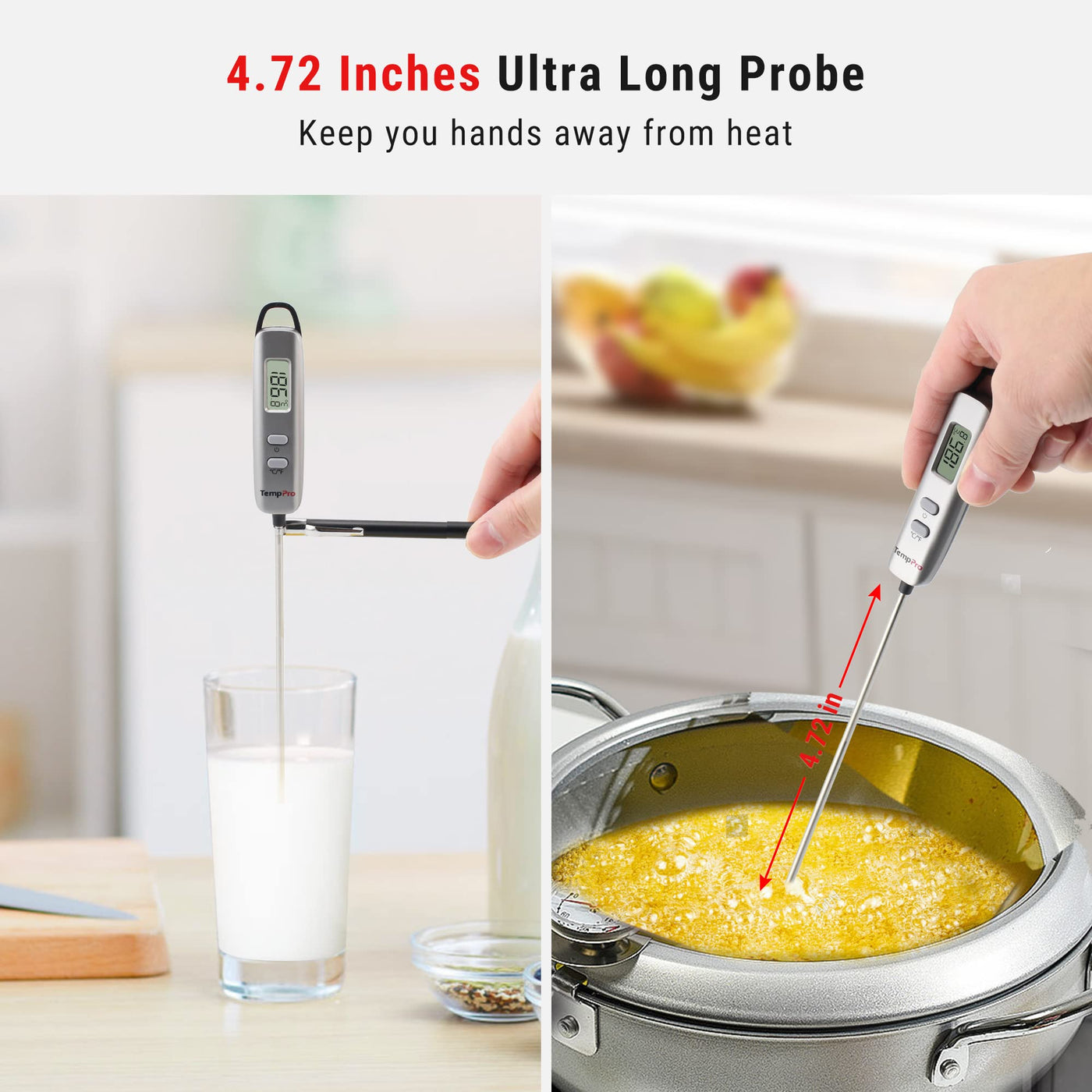 TempPro by ThermoPro Digital Meat Thermometer Instant Read Cooking Food Thermometer with Long Probe for BBQ Grill Smoker Oven Deep Fry Candy Kitchen Thermometer, Silver