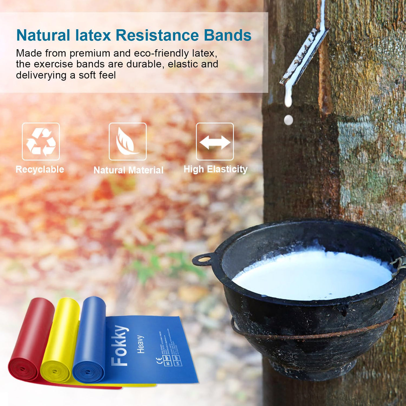 - Fitness band in 3 levelsYellow (light / 0.35 mm); Red (medium / 0.45mm); Blue (heavy / 0.55 mm). Easily adapt your training to your muscle strength and flexibility. They are effective when extended or when knotted in the shape of a ring.