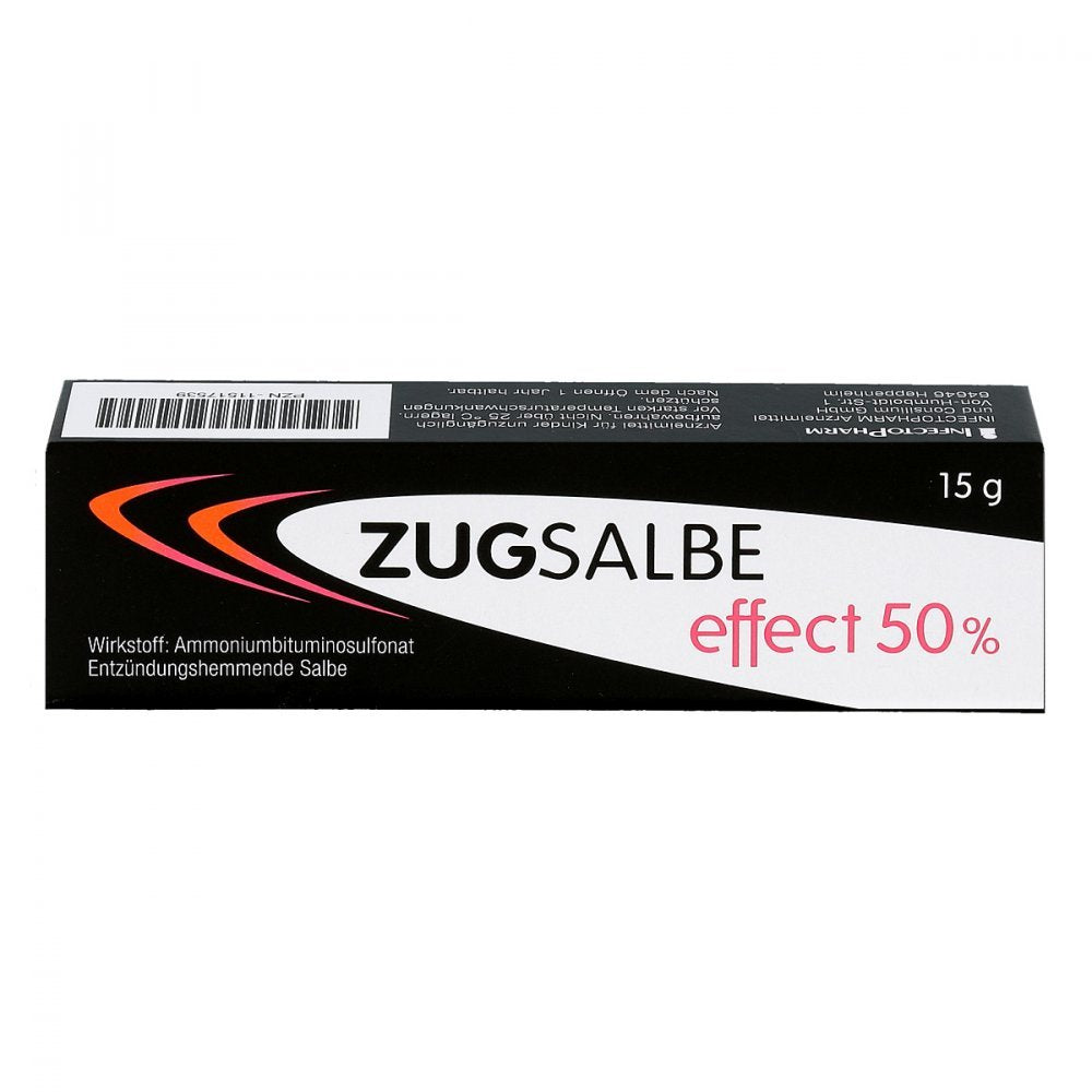 Product description PZN: 11517539 ZUGSALBE effect 50% ointment 15 g Ingredients / Ingredients ZUGSALBE effect 50% ointment 15 g P.when('A' ).execute(function(A) { A.on('a:expander:toggle_description:toggle:collapse', function(data) { window.scroll(0, data.expander.$expander[0].offsetTop-100) ; }); }); Legal information For risks and side effects, read the package leaflet and ask your doctor or pharmacist. More