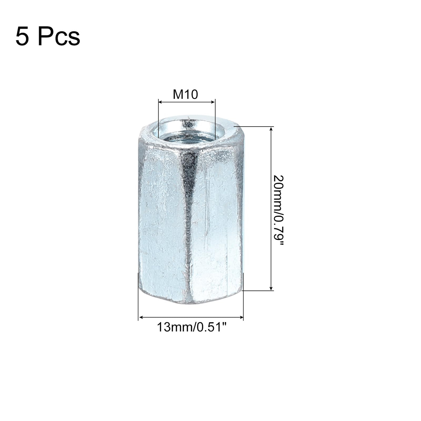 uxcell M10x1.5mm Coupling Nuts, 5 Pcs Carbon Steel Galvanized Hex Rod Coupling Nuts Threaded Rod Connectors 20mm, for Industrial Construction Fasteners, White