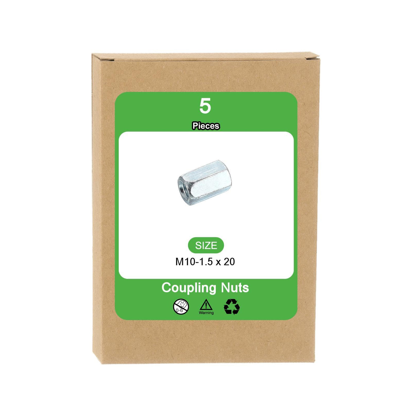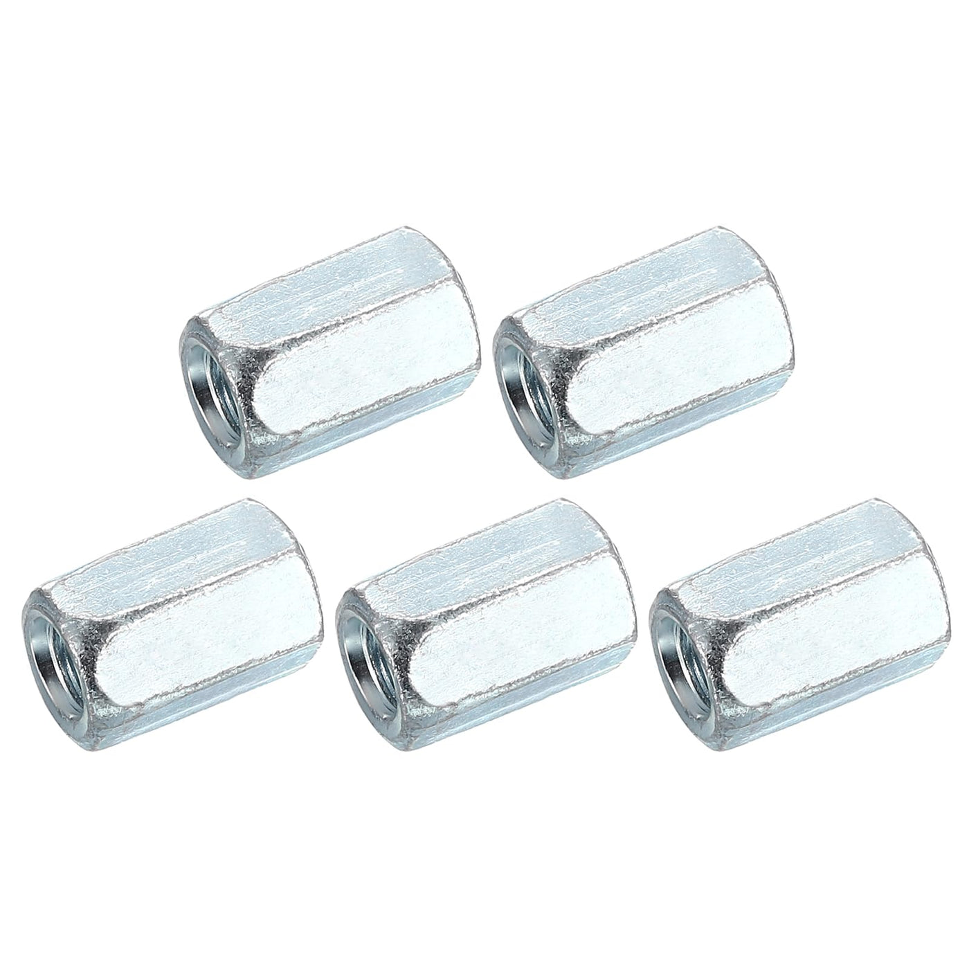 uxcell M10x1.5mm Coupling Nuts, 5 Pcs Carbon Steel Galvanized Hex Rod Coupling Nuts Threaded Rod Connectors 20mm, for Industrial Construction Fasteners, White M10x1.5mmx20mm