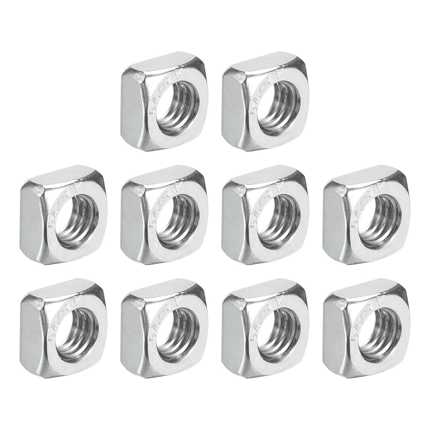 uxcell M5-0.8x4 Square Nuts, 304 Stainless Steel Coarse Thread Square Nuts Fasteners for Home Repairs and Professional Engineering, Silver, 10pcs