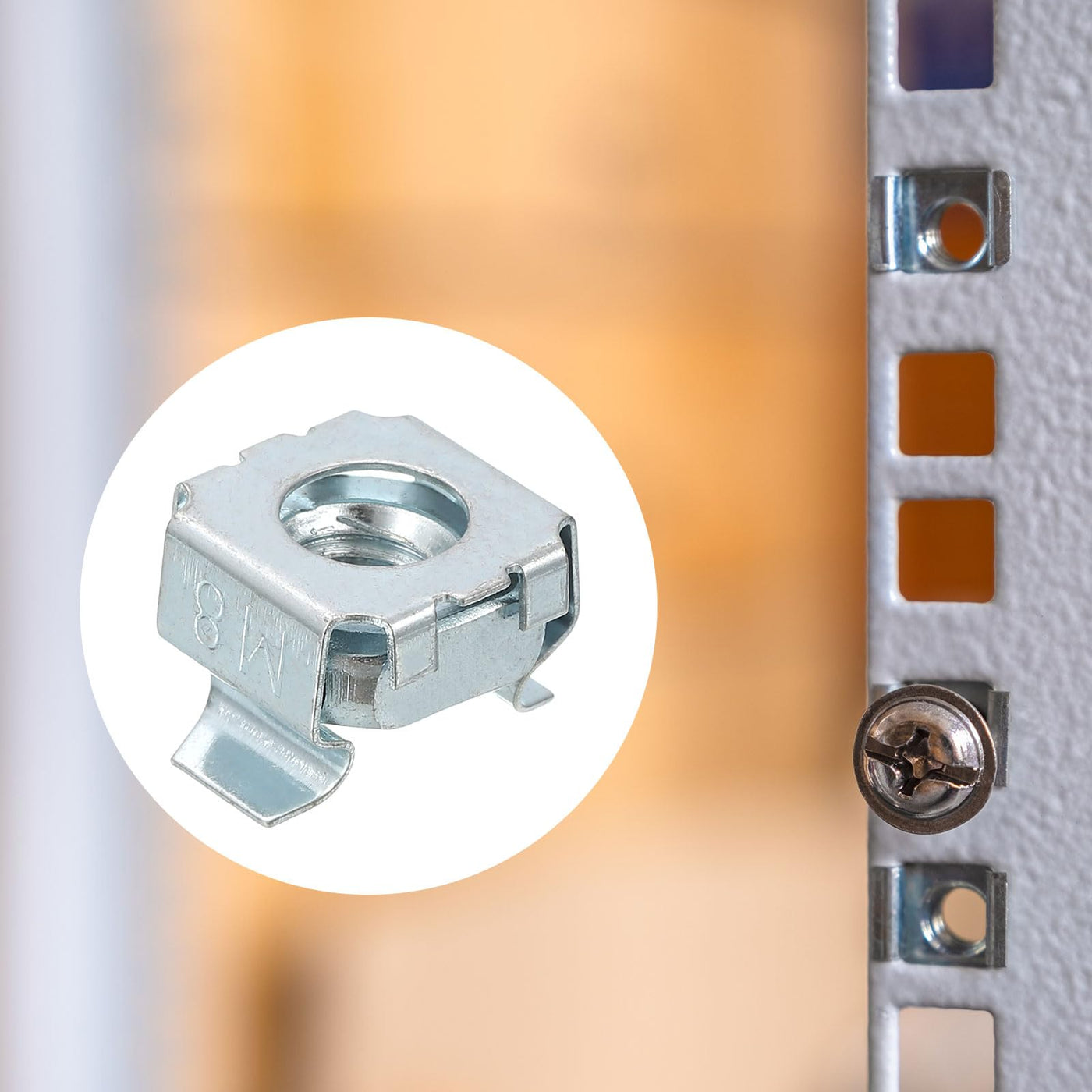 - [Feature] Square cage nut designed for racks and cabinets with square holes. Cage nuts are versatile, self-retaining fasteners, and can be widely used.