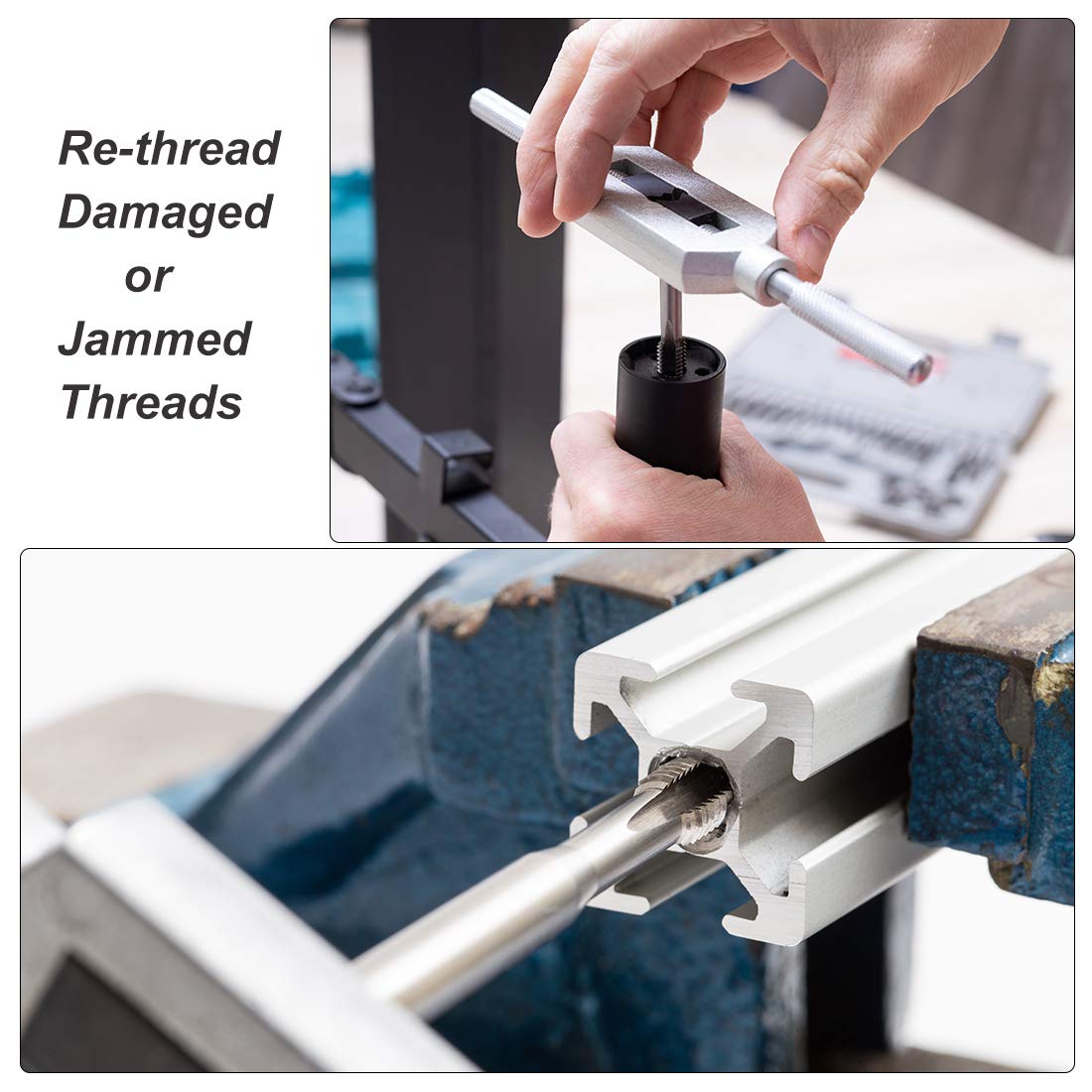 • Wide Applications: The thread tap kit is used to re-thread damaged or jammed threads. Suitable for tapping through or shallow holes in mild steels, aluminum, iron, copper, hard plastic.
