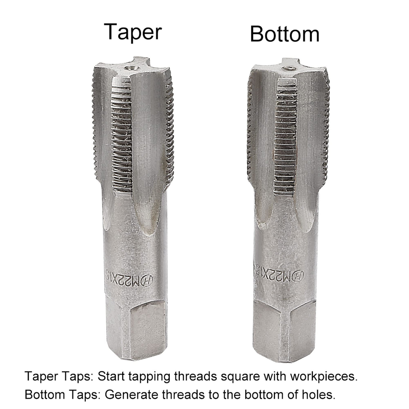uxcell Metric Hand Tap M22 Thread 1.5 Pitch 4 Straight Flutes H2 Alloy Tool Steel Bottom & Taper Screw Tap Set Tapping Tools for Repairing 1 Pair M22 x 1.5