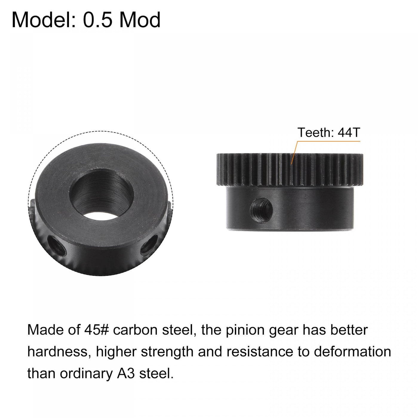 uxcell Pinion Gear Set, 45# Carbon Steel Motor Rack Spur Gear with Step Black, 0.5 Mod 44T 8mm Bore 23mm Outer Dia, M4 Set Screws Included