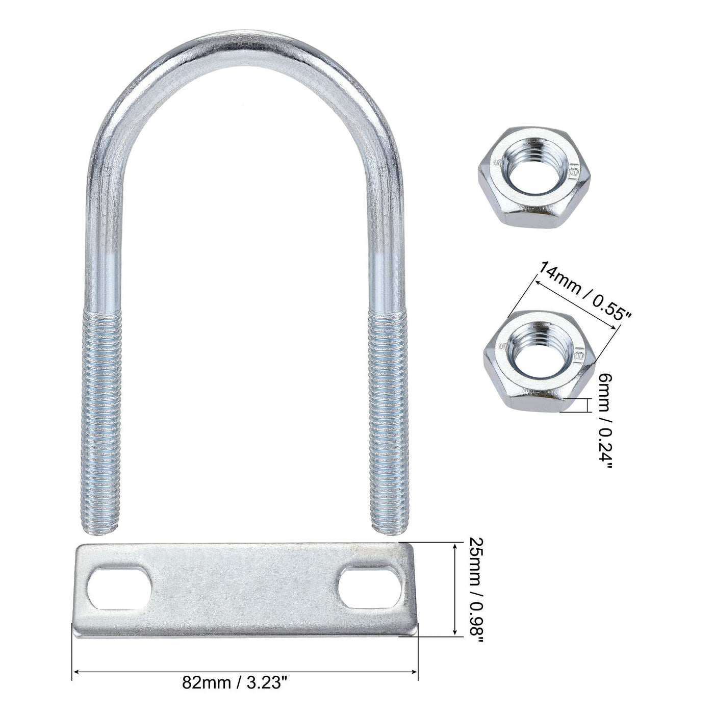 • Hex Nut Size: 14 x 6mm / 0.55" x 0.24"(Hex Width*H); Frame Plate Size: 82 x 25 x 2mm / 3.23" x 0.98" x 0.08"(L*W*T)