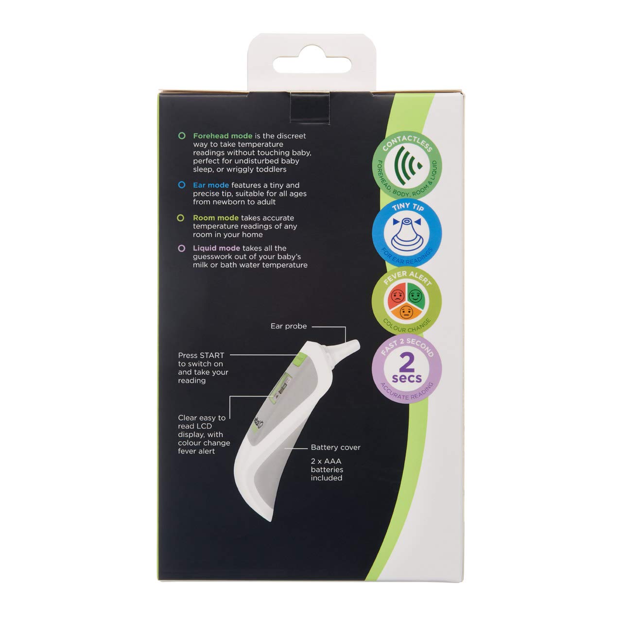 Vital Baby PROTECT 4 in 1 Contactless Thermometer - Different Modes Including Forehead, Ear, Room and Liquid - LCD Display - Colour Change Fever Alert - No Touch Temperature Checker Gun