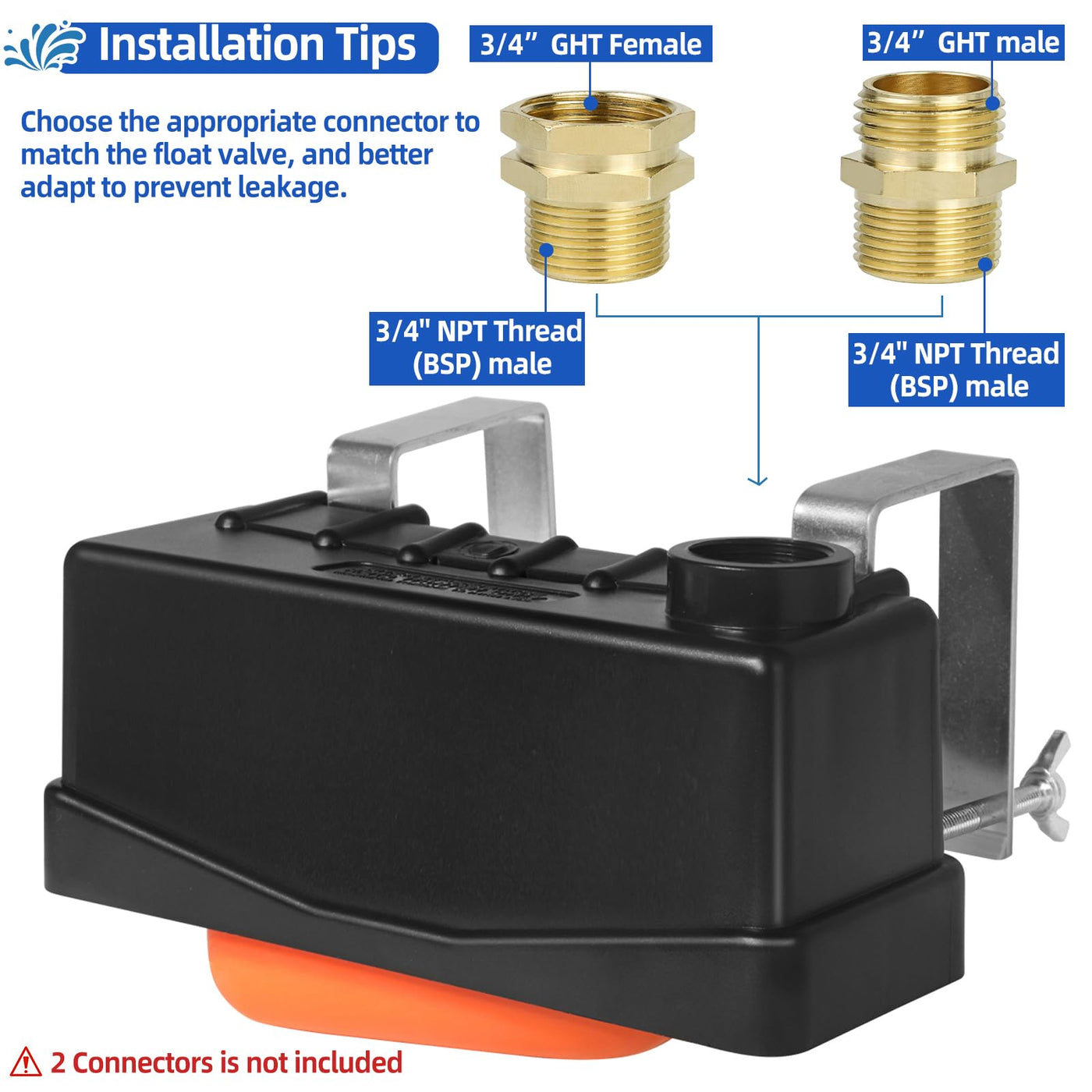 - Easy to install: The livestock waterer float valve is easy to assemble, package comes with PTFE tape, just connect the 3/4 hose, and hang the entire float valve and bracket on the water tank, and tighten the screws to connect the bracket and housing.