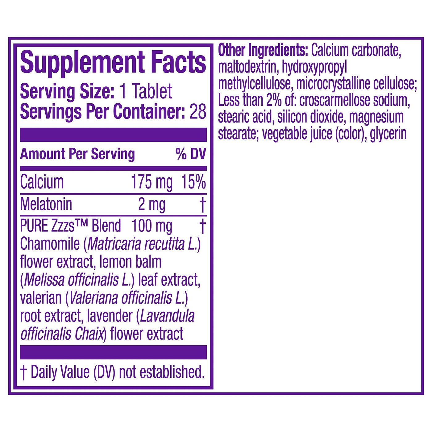 - PURE Zzzs BOTANICAL BLEND. Made with lavender, chamomile, valerian root & lemon balm, botanicals which have been used for centuries